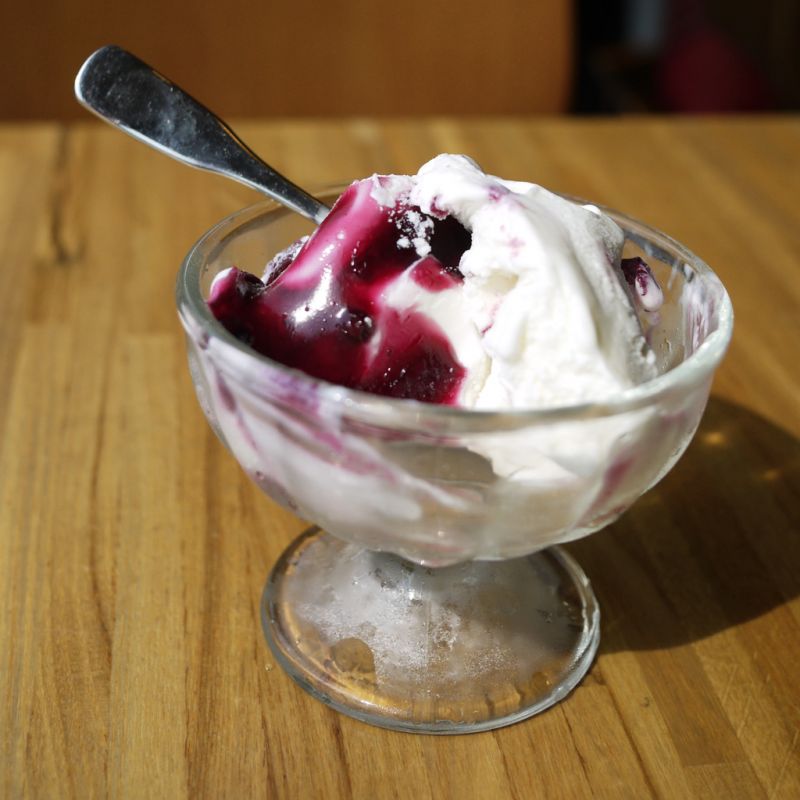 漫步在美術館綠園道,一棟極盡透明的建築吸引了目光。走進店裡瞧瞧,櫃台裡五顏六色的手工冰淇淋,有百香果、奇異果、野莓、藍莓優格、OREO、巧克力、抹茶,光是用眼睛品嘗,就能感受到它們的美好滋味!經過一番抉擇,決定以野莓和藍莓優格一起享用,帶著紅寶石色澤的野莓冰淇淋,酸酸甜甜、濃郁滑順,藍莓和優格攜手,融合出甜美愉悅的多重層次。