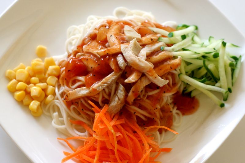 軟嫩多汁的火雞肉,Q中帶勁的純白細麵,淋上新鮮番茄和辣椒佐羅勒香草莎莎醬,極簡又濃烈的震撼交疊,在嘴裡律動出熱情狂野的Salsa舞步。