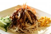 招牌日式和風涼麵,在濃郁芝麻花生醬的香氣背後,微甜的美乃滋拌著冰鎮細麵,入嘴瞬間的清香順口,盛夏暑氣全消。