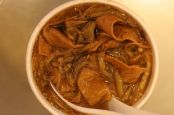 加了豆皮、素滷肉、金針菇、木耳、杏苞菇等食材熬煮的麵線糊,在中藥湯頭的長時間燉煮下,吸收了飽滿的濃濃香氣,吃起來清香爽口,回味無窮。