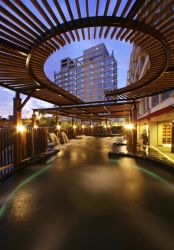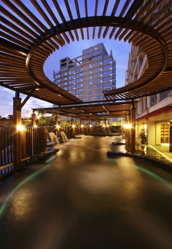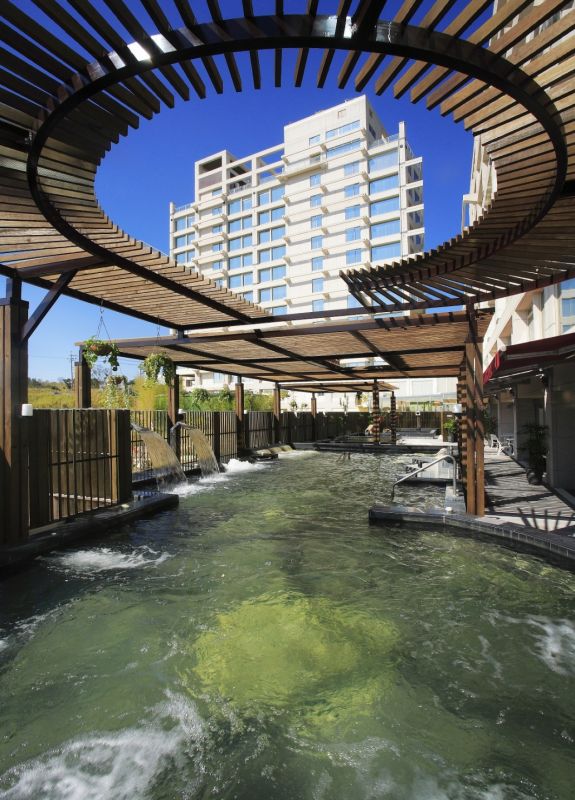 清新溫泉度假飯店位於大度山上,擁有360度的全景觀視野,強調清新、自然、活力等三大元素。建築本體與四周美景融合爲一,空間古樸簡約,處處瀰漫優雅與陽光、水聲、光影。這裡不僅可遠眺中央山脈、台中港區,入夜後更可輕易擁攬璀璨夜景,24小時的景致隨著晨昏、晴雨各有風情。