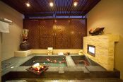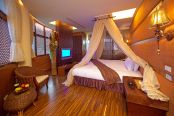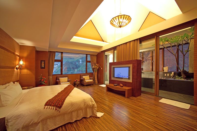 走進位在台中縣谷關溫泉風景區溫泉巷十號的【惠來谷關】,一片木瓦白牆、一座座的茅草涼亭,放眼望去盡是原始風情。在這裡隨處可見熱帶南洋植栽,結合峇里島及原住民風格的人文氣息,散發出濃厚的自在與浪漫。