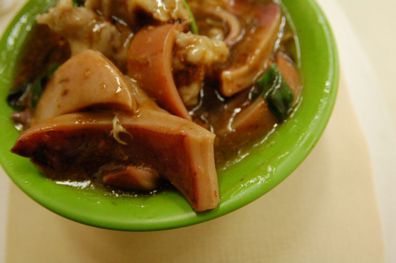 魷魚片的厚度恰到剛好,完全吸收羹湯的精華在內。羊肉羹沒有過重的羊騷味,咬勁中帶有些微的香味,土魠魚炸的酥黃,將魚的味道由裡到外散發出來融合羹湯的沙茶香。
